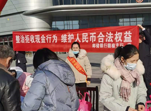 为维护消费者合法权益,维护人民币流通秩序,邮储银行赣榆支行丰富宣传方式和渠道积极开展整治拒收人民币现金宣传活动。